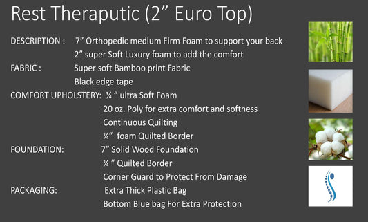 REST THERAPUTIC KALIGA BAZAAR QUEEN FOAM MATTRESS 7 INCH WITH 2 INCH EUROTOP