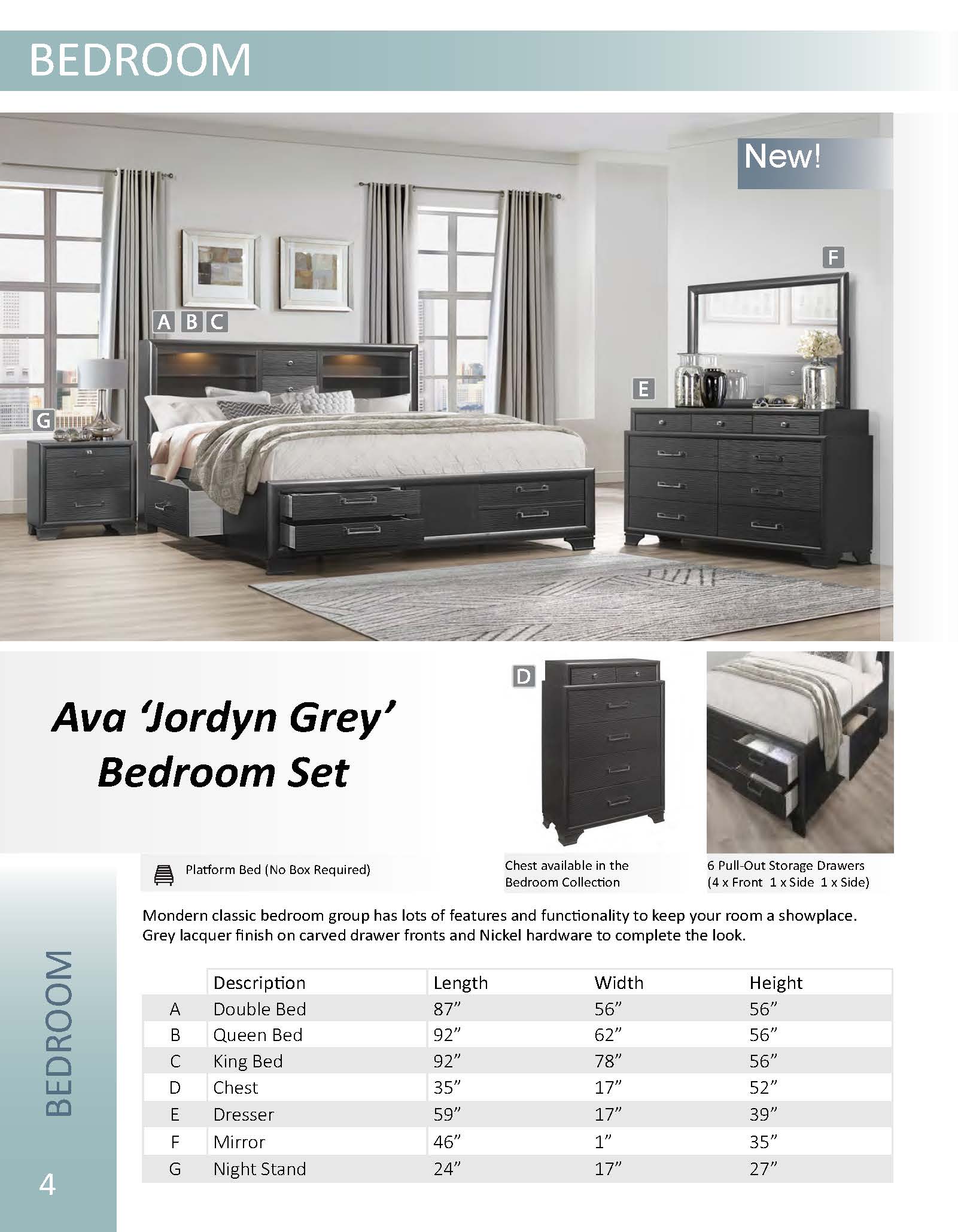 Lots of features and functionality are smartly tucked away in this modern classic bedroom group. Between the storage headboard, under-bed drawers and tall, 9 drawer dresser, it’s easy to keep your room a showplace. With Grey lacquer finish on carved drawer fronts and Nickel hardware to complete the look.
