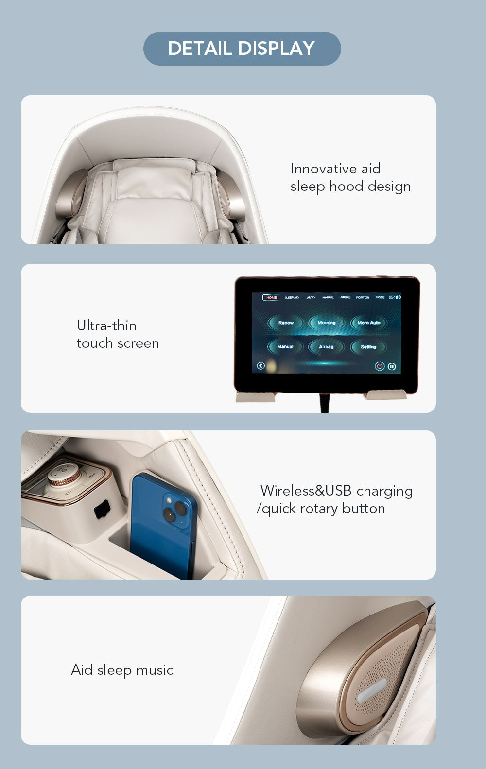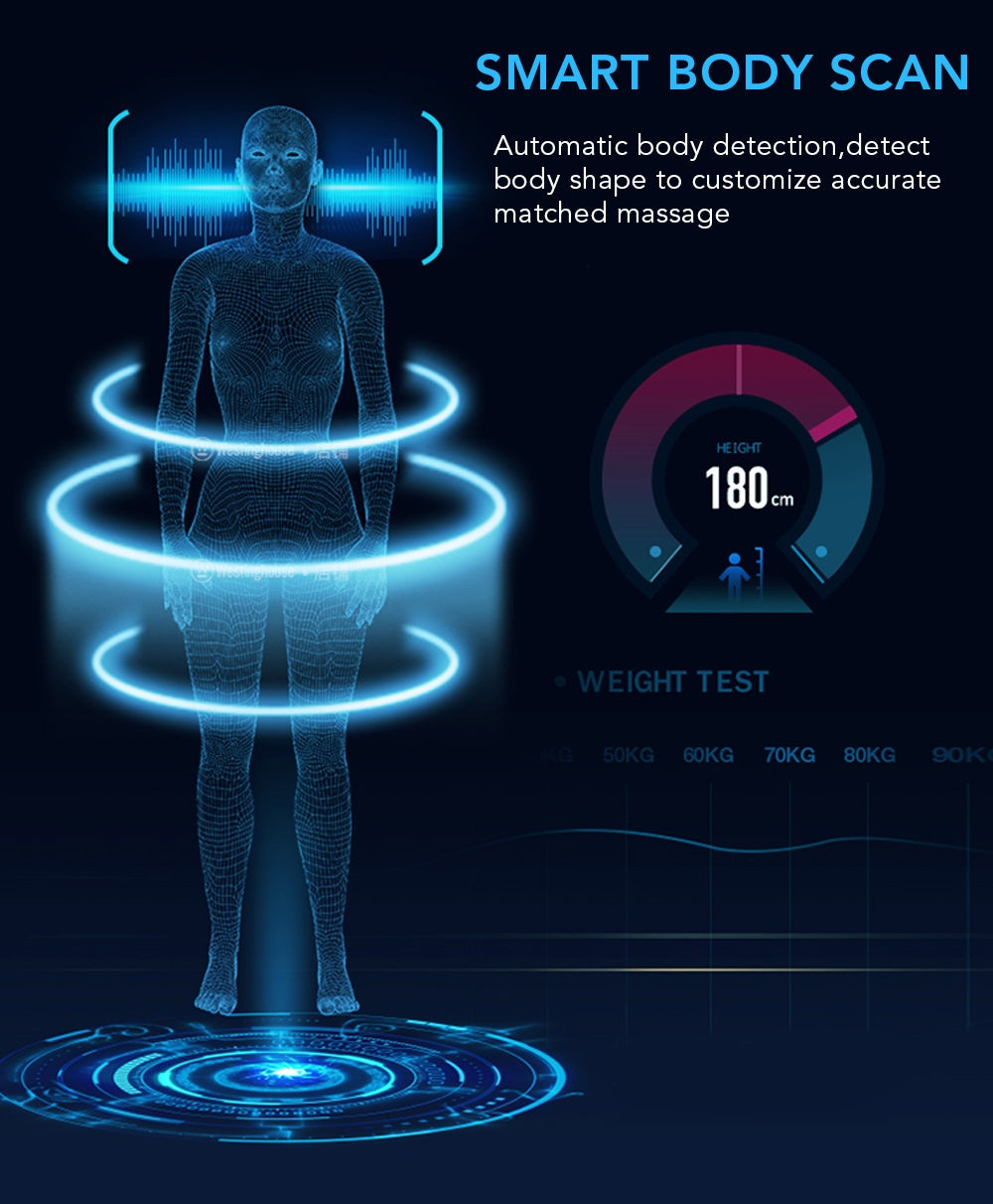 - Fully wrapped electric retractable calf, heel flap,double row rollers on the soles, calf kneading plate